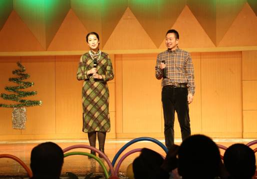 晚会节目形式多样,内容丰富,歌曲、舞蹈、相声、小品、情景剧等节目精彩纷呈。马国顺和马慧莉老师深情演唱的《在我生命中的每一天 》、郭晓斌和汪璇老师合唱的《红尘情歌》以及狄振兴老师和学生的联唱把整个晚会推向了高潮,学生表演的舞蹈《刀郎舞》、《民族大融合》、爵士舞串烧、小品《好日子到头了》、魔术《赤色奇迹》、相声《书文戏里》、学生独唱《站在草原望北京》以及学生的歌曲联唱等精彩节目为全院师生送上最美好的新年祝福。