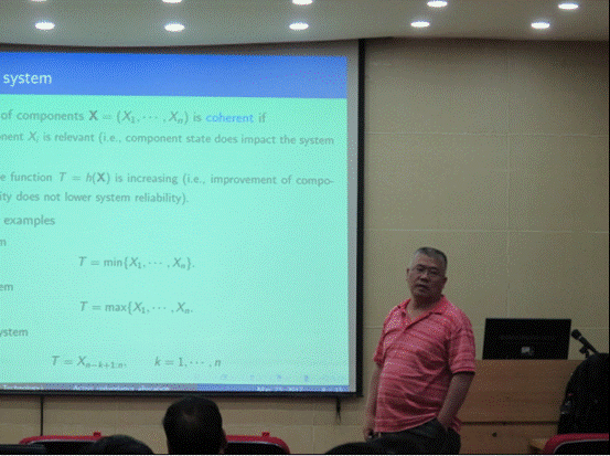 beat365亚洲体育官方网站飞天学者讲座教授、美国斯蒂文斯理工学院教授李效虎博士于5月26日上午,在教学9号楼B308会议厅举办了第二场题为《位置随机递增随机变量广义累积的增凸序及其应用》的学术报告。相关专业40多位教师和研究生参加了此次学术报告会。报告中,李效虎教授就统计相依性、位置随机递、广义累积、随机序、精算学及可靠性理论诸多领域的最新研究进展同广大师生进行了广泛而深入的讨论和交流。会后,李效虎教授就师生们提出的相关问题进行了解答。