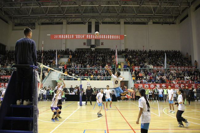 11月2日晚,由校体委、校学生会主办的2017年beat365亚洲体育官方网站“袁敦礼”杯学生男女混合排球赛决赛暨颁奖典礼在体育馆举行。校体委、校团委等有关单位负责人,学院领导、部分老师以及全校2000余名师生观看了比赛。
