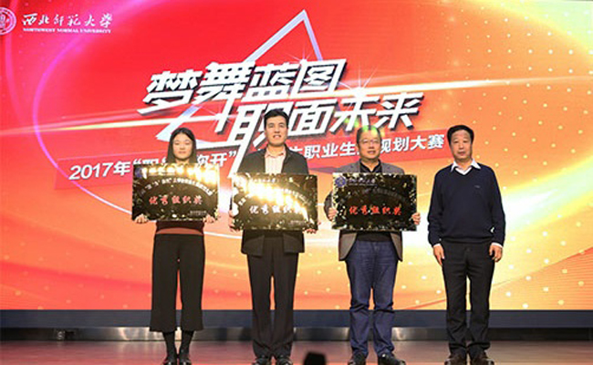 本届职业生涯规划大赛有来自25个学院的283支参赛团队近1000名学生参加了比赛,整个赛程历时1个多月。经学院广泛动员、精心组织和推荐,辅导员王强指导的五个团队通过了学校初评、复赛和决赛,取得了优异成绩。其中杨璨旖、李俊、李文谦和薛思妤同学组成的“对对队”代表队和张妍、雒亦普、欧春辉和宋玉超组成的“问道队”代表队荣获二等奖;何怡红、李梦、康燕和吕瑶虹同学组成的“My way”代表队荣获三等奖;郭瑞、魏嘉敏、薛亚敏、杨茗和姚志佳同学组成的“梦之队”代表队,张晓、吴丹、康宏杰组成的“晨星队”代表队荣获优秀奖。学院荣获“优秀组织单位”荣誉称号。