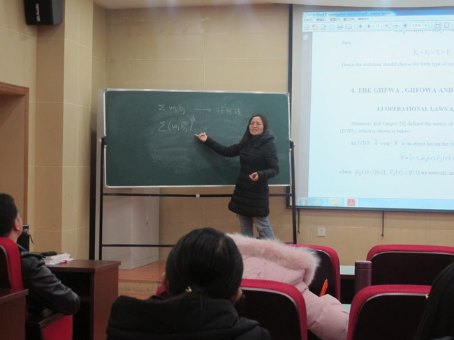12月23日下午,应学院邀请,陆军工程大学硕士生导师赵华教授来我校进行学术交流, 在教学9号楼C101报告厅作了题为“直觉模糊信息集成和聚类方法研究”的学术报告,报告会由乔虎生教授主持。相关专业师生40余人参加了报告会。