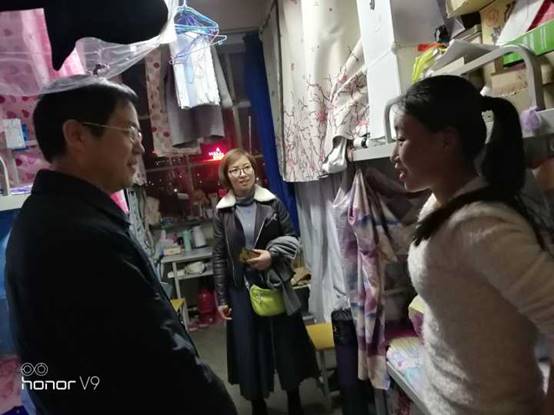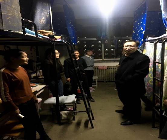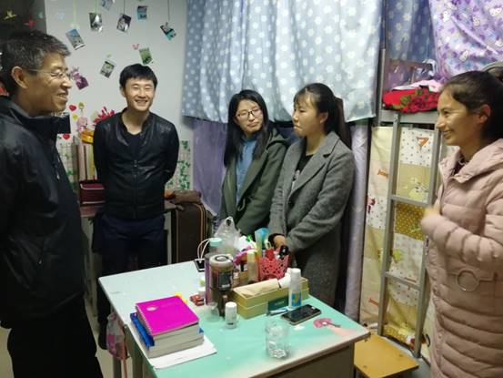 学院党委书记常正霞、副书记王玮、副院长张召琪走访了兰天公寓学生宿舍,院长李永祥、团委书记杨霞宏走访了校内4号公寓,副院长刘建成、专职辅导员王强走访了党校7号公寓,副院长张贵仓和马成龙老师看望了新校区研究生。班主任各自走访看望了本班学生。