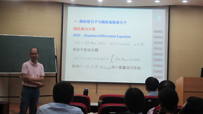 报告中,周盛凡教授详细介绍了无穷维随机动力系统的随机吸引子与随机指数吸引子的概念,然后介绍了随机指数吸引子存在的抽象结果及其在随机格点动力系统中的应用.