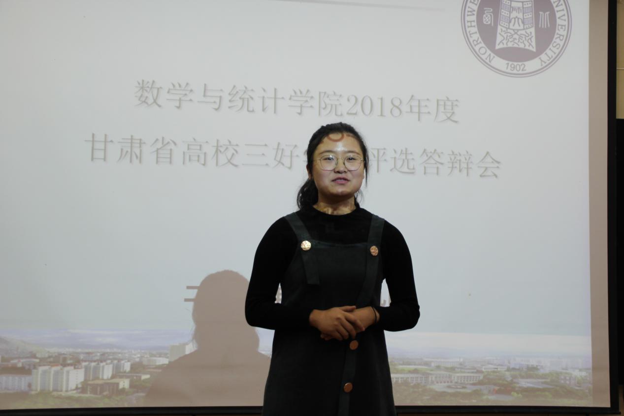 本次答辩采用个人演讲与评委提问相结合的方式,同学们详细介绍了自己在思想、学习、生活、社会实践等方面的情况,展现了在校期间的进步和成长过程,表明了今后的努力方向。经过激烈角逐,最终2015级数学与应用数学1班(云亭班)牛付喜、2015级数学与应用数学4班于圆圆、2016级数学与应用数学1班(云亭班)陈碧霄3名同学入围2018年度甘肃省高校三好学生候选人。