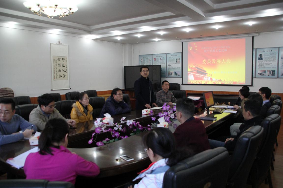 2018年11月16日下午,数学系教工党支部在教学9号楼B308会议室召开了全体党员大会。大会由党支部书记郭晓斌同志主持,学院党委委员颜荣芳同志、刘建成同志参加了会议。