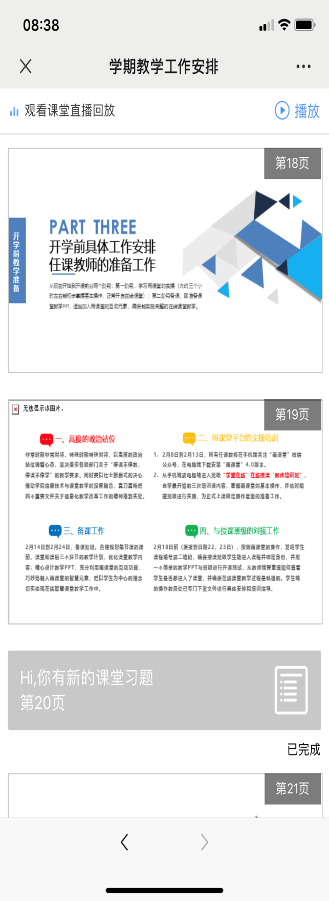 一、云端课堂,保质保量完成教学任务。2月9日,刘建成副院长通过雨课堂主持召开beat365亚洲体育投注2019-2020学年度第二学期教学工作安排会议,根据国家教育部、甘肃省教育厅和学校在疫情防控期间的教学工作要求,对学院的线上教学工作进行了详细部署安排,要求全体教职工要在特殊时期提高认识、转变思维、扎实备课,保质保量完成教学任务,同时为老师们示范“雨课堂”等教学软件的使用方法。全院教师严格按照课程安排进行线上教学,熟练运用多种教学软件,为学生在线答疑解惑。