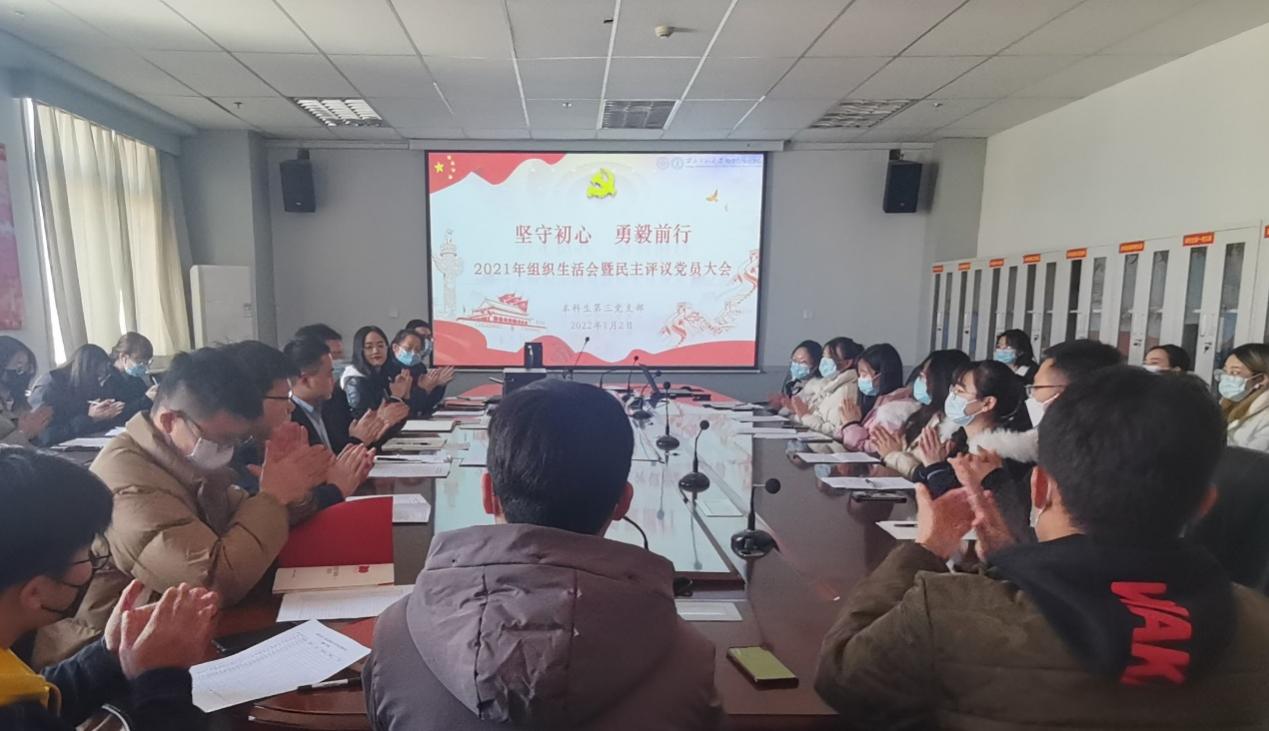 根据学校《关于召开2021年度党支部组织生活会和开展民主评议党员的通知》文件精神和学院党委的安排部署,本科生第三党支部于2022年1月2日下午15时在9号楼A1611会议室召开了“坚守初心·勇毅前行”为主题的2021年度组织生活会暨民主评议党员大会。会议由党支部副书记王寿琮同志主持,学院党委副书记张向东同志出席并进行全程指导,支部全体正式党员和预备党员20余人参会,部分入党积极分子列席会议。