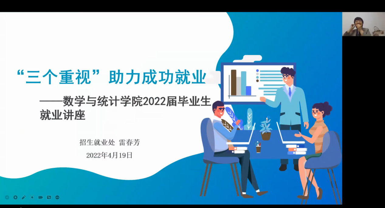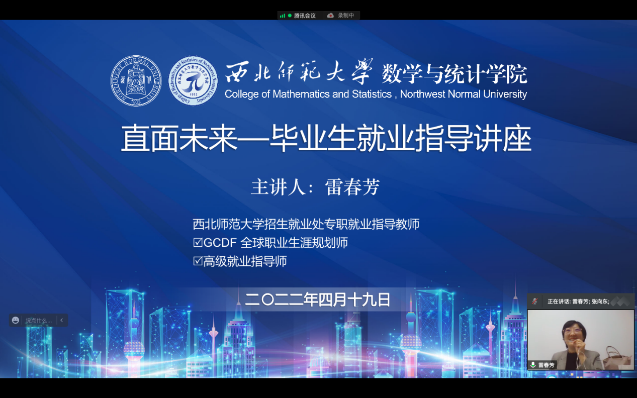 为更好地促进beat3652022届毕业生高质量充分就业,进一步帮助学生树立正确的就业观和择业观,解决考研、就业中的困惑,了解目前的考研、就业形势、就业政策,转变就业观念,提高就业技能,4月19日晚,学院邀请招生就业处专职就业指导教师雷春芳老师在腾讯会议做了题为《“三个重视”助力成功就业》的专题讲座,讲座由学院党委副书记张向东主持。