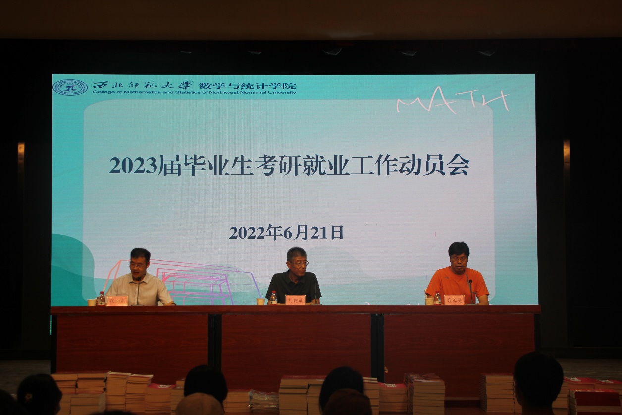 为帮助2023届本科毕业生坚定考研信心、明确考研目标、熟悉考研政策、了解考研形势、把握考研机会,beat365于6月21日晚19:30,在大学生发展活动中心召开了2023届本科毕业生考研就业动员大会,会议由党委副书记张向东主持,院长刘建成、党委书记苟正斐、2023届毕业班班主任、全体辅导员及2023届学生共计260人参加了会议。