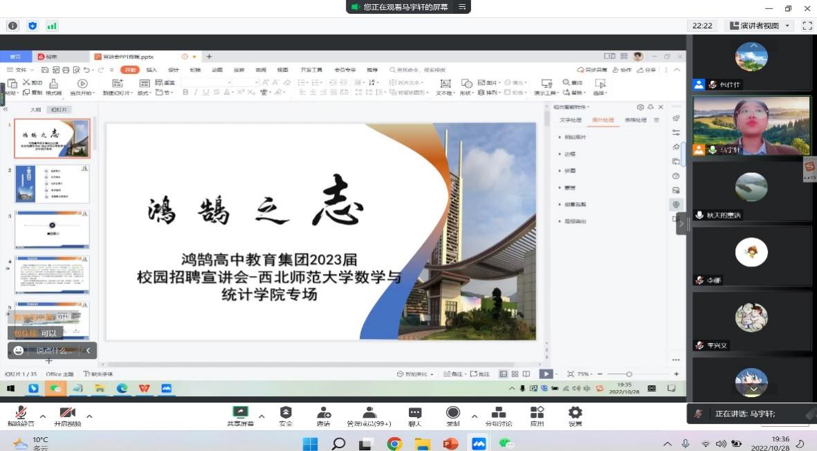 为切实做好毕业生就业工作,搭建毕业生与用人单位相互交流、双向选择的平台,为2023届毕业生提供更多的求职就业机会,20221028日晚上1930,beat365举办线上四川鸿鹄高中专场招聘宣讲会。学院辅导员、毕业班班主任和2023届本硕毕业生共160余人参加。