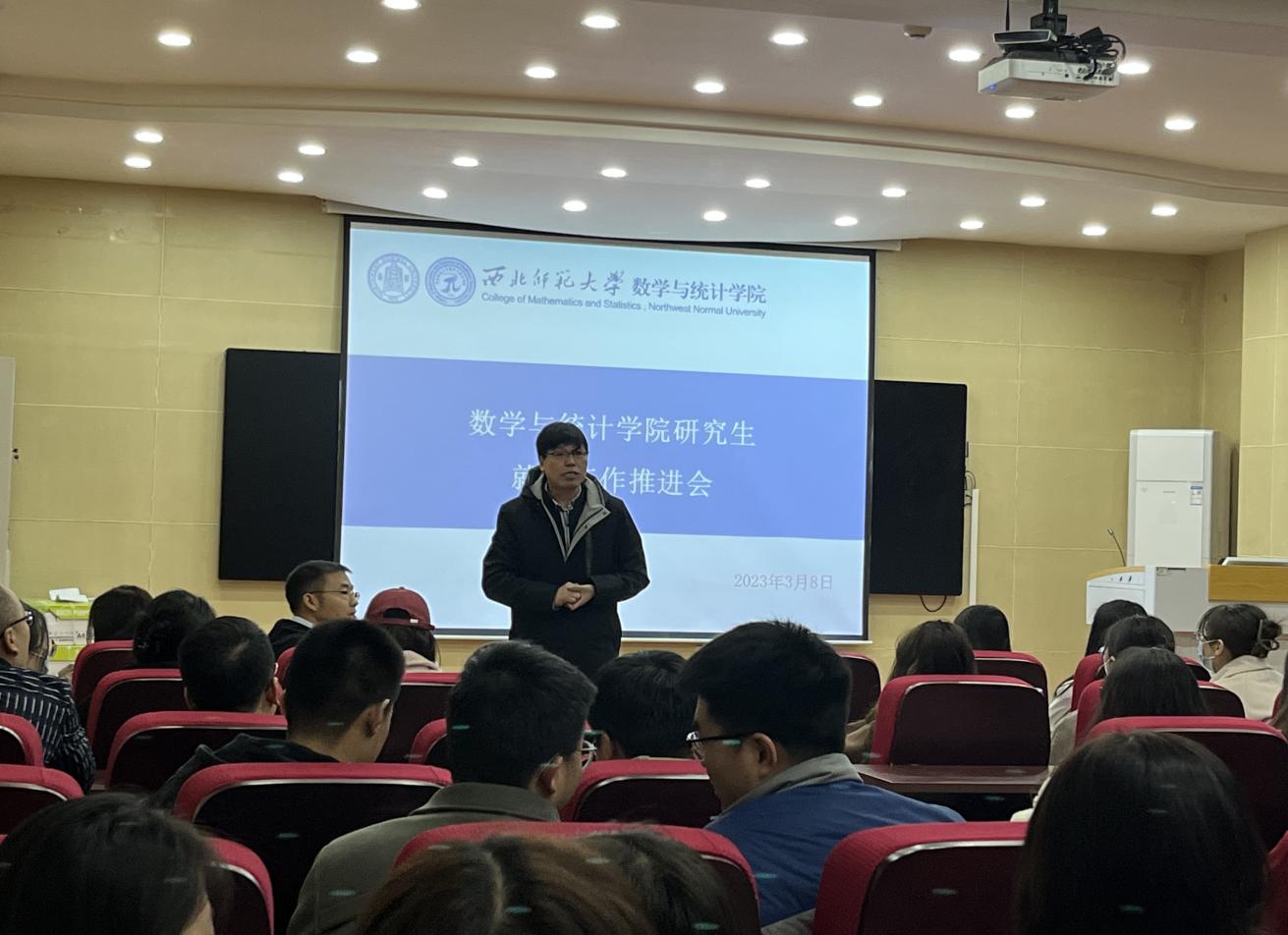 为进一步引导毕业研究生认清就业形势,转变就业观念,增强就业信心,发挥就业主观能动性,推动学院2023届毕业研究生更高质量就业,3月8日上午,学院在9B101组织召开研究生毕业就业工作推进会,会议由党委副书记张向东主持,党委书记苟正斐、研究生班主任马成龙老师、全体辅导员及2023届全体研究生参加了会议。