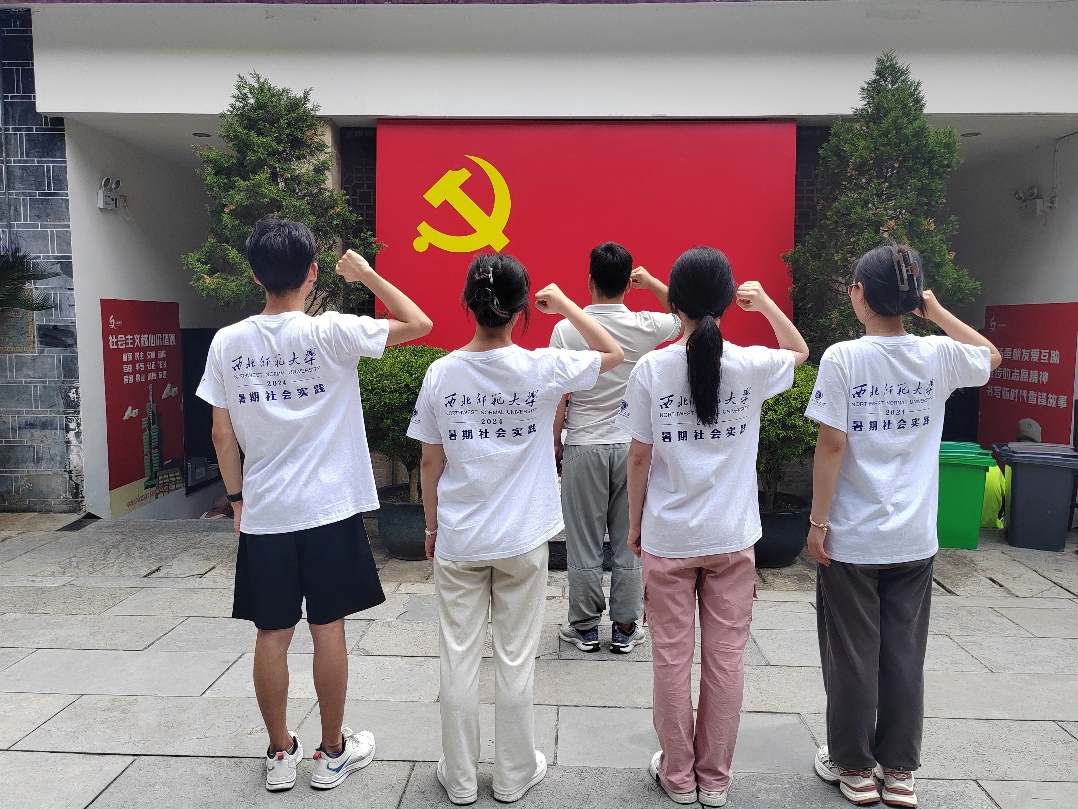 实践团全体成员面向鲜艳党旗,重温入党誓词,表达对党的无限忠诚和为共产主义奋斗终身的坚定决心。