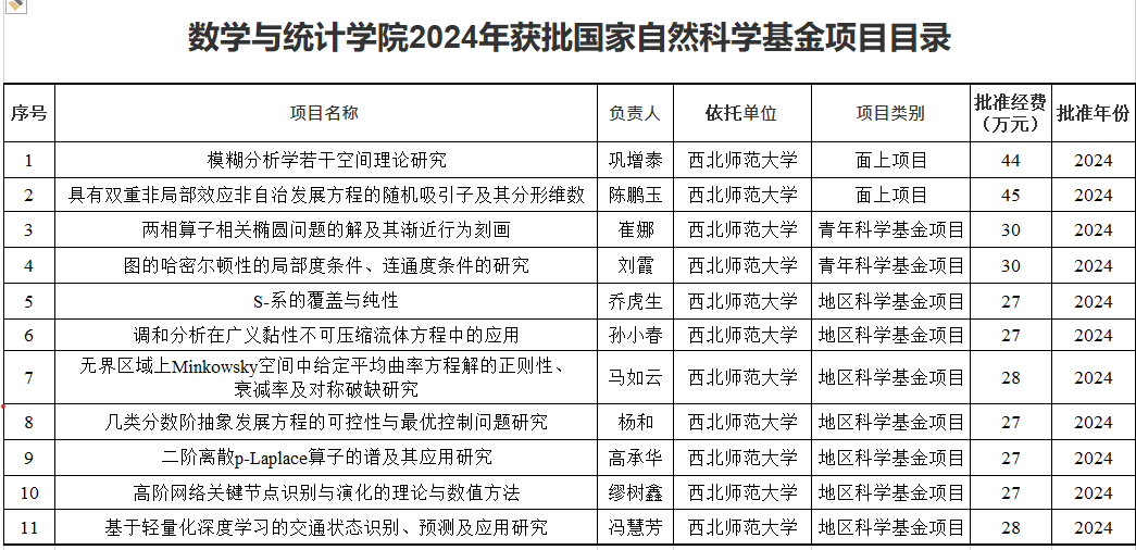2024年8月23日,国家自然科学基金委公布了2024年度国家自然科学基金项目评审结果,beat365共获批国家自然科学基金项目11项,其中面上项目2项,青年科学基金项目2项,地区科学基金项目7项。beat3652024年度获批项目总数和质量均获得提升,取得了可喜的成绩。