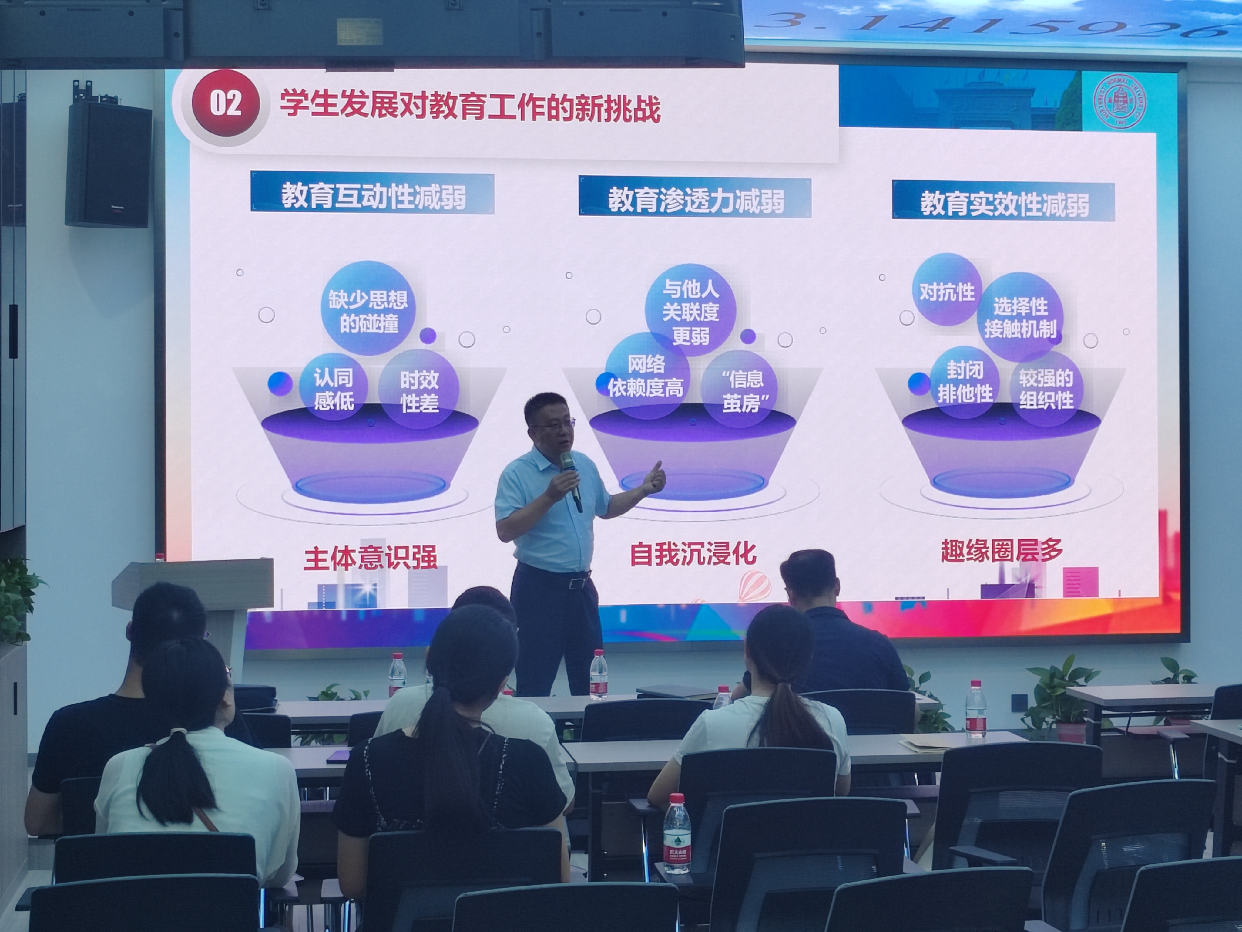 牛定炜副书记作了题为《高校一站式学生社区建设的理论与实践》讲座,他围绕当前高校面对外部环境和学生诉求类型多样等各种挑战下,分享了学校“一站式”学生社区在开展的党建和思政工作方面取得经验,就班主任如何做好大学生思想政治工作提出了很多实用意见和建议,对学院下一步精准对接学生需求,畅通学生意见和建议反馈渠道,做好学生教育管理服务工作具有很好的指导意义。