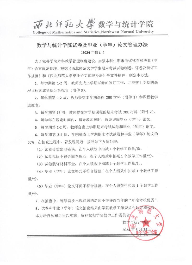 beat365亚洲体育投注试卷及毕业(学年)论文管理办法