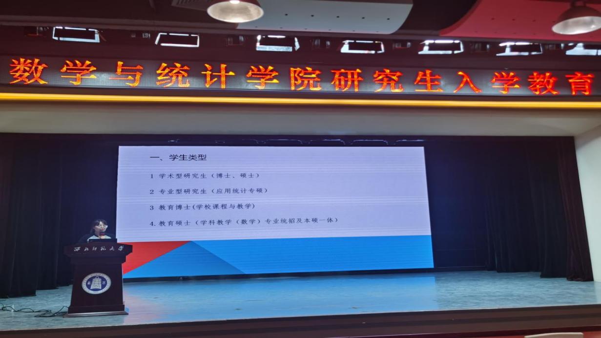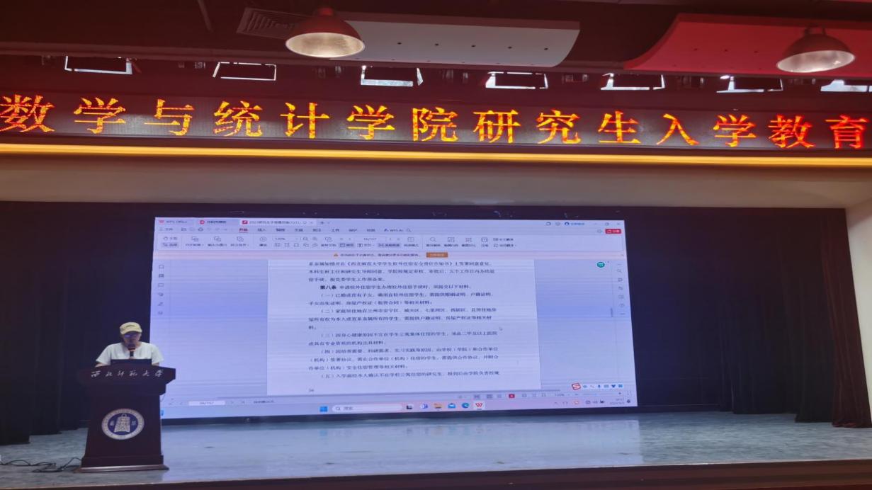 王婷老师针对学院学科方向设置,研究生培养方案和培养环节进行了详细介绍,重点强调了选课时的注意事项,以及选课流程,培养计划制定、学位申请要求等关键环节的规程。解读了课程学习、论文选题和开题、中期考核、论文送审、答辩及学位授予等时间节点安排,鼓励研究生新生明确发展目标,合理规划生活,提高科研创新和实践能力。