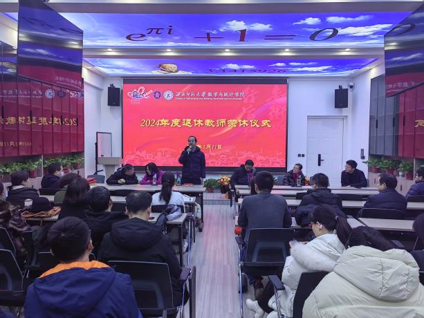 2025年1月11日,beat365亚洲体育投注在DO7举行2024年退休教师荣休仪式。张俐杰、马国顺、吴红萍、张贵仓四位退休教师(汪小琳老师因事未能出席)和学院全体班子出席,全院教职工参加,仪式由学院党委副书记张向东主持。