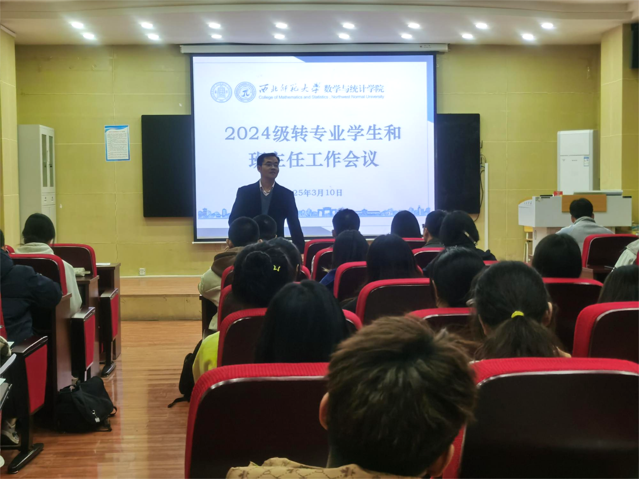 会议由张向东副书记主持。首先,他对转专业学生表示热烈欢迎,并转达了学院全体师生对转专业学生适应与成长的重视。他向各位转专业同学介绍了2024级各班班主任,并要求各班主任召开专题班会,进一步加强促文明养成,创优良班风建设。
