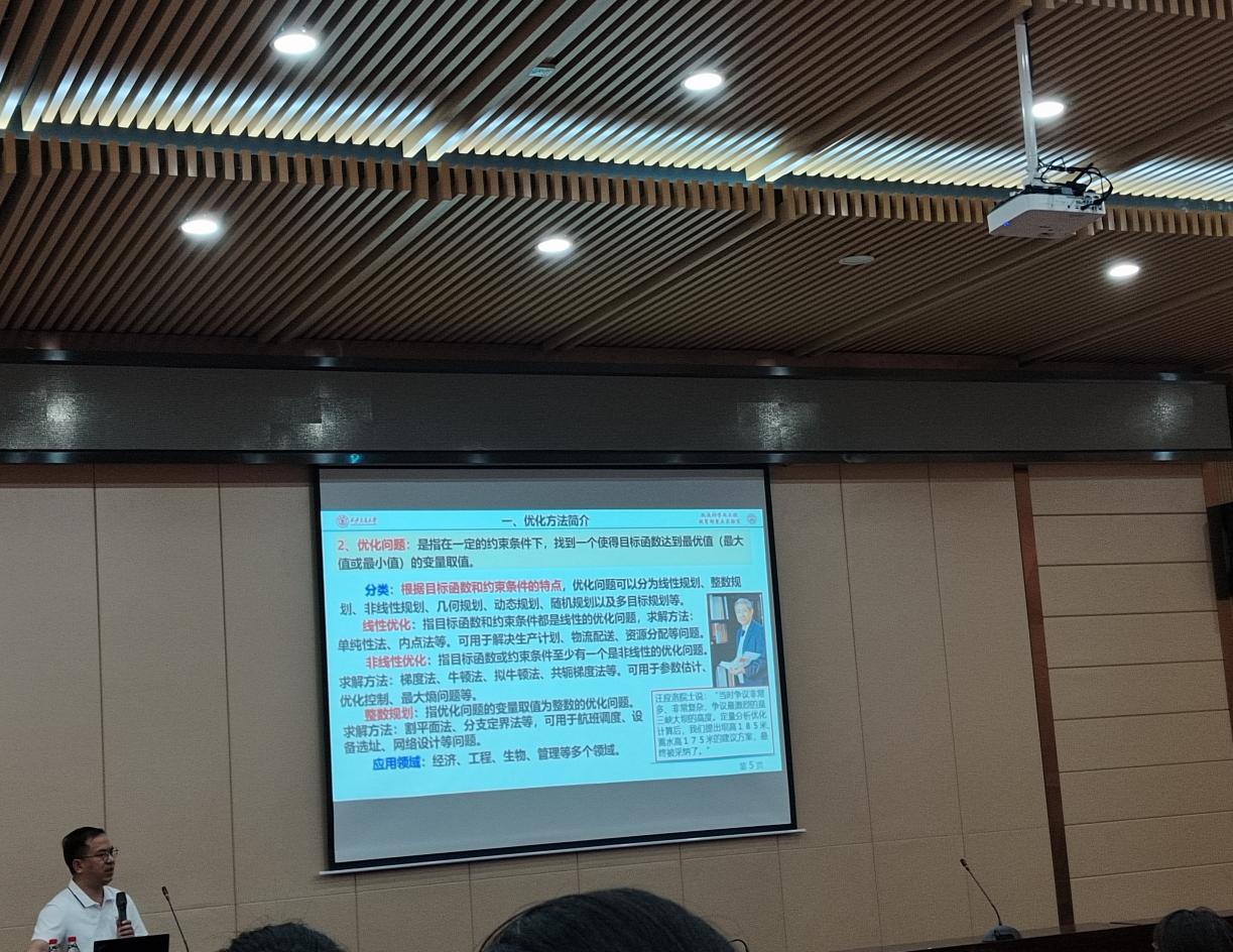 研讨会上,全国大学生数学建模竞赛组委会副秘书长、复旦大学蔡志杰教授深入分析和讲解了“2024年全国大学生数学建模竞赛A题”。全国大学生数学建模竞赛组委会副秘书长、北京邮电大学张文博副教授讲解了建模竞赛的注意事项,涵盖参赛规则、人工智能理性应用及知网使用等内容。空军工程大学梁放驰副教授从题目背景、建模约束条件等方面深入解析了“2024年全国大学生数学建模竞赛C题”和“2021年全国大学生数学建模竞赛D题”。西安交通大学能源与动力工程学院陈磊教授带来了“数学建模竞赛中的最优化问题”的讲座,剖析历年竞赛题目,给出了求解优化问题的关键步骤及论文撰写的规范。西安科技大学冯卫兵副教授解析了“2023年全国大学生数学建模竞赛C题”,并给出了数学建模中合理使用AI的建议。