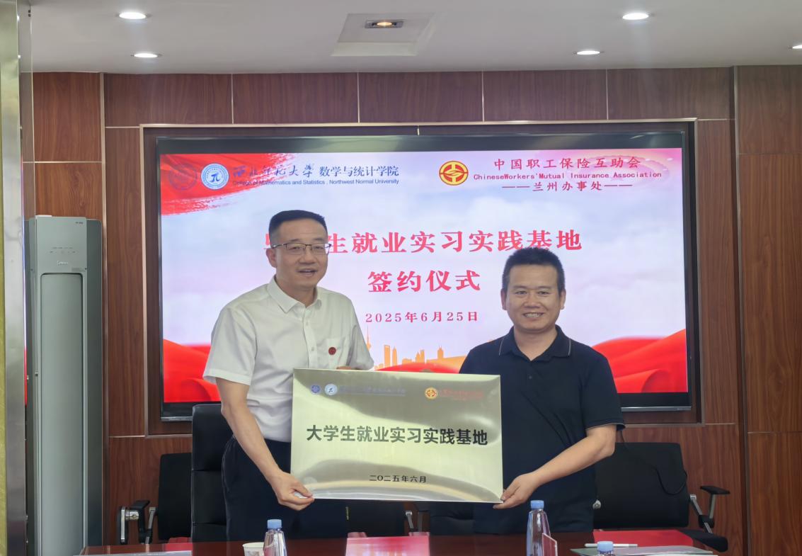 在参会人员共同见证下,学院与中国职工保险互助会兰州办事处正式签署《毕业生就业实习实践基地建设合作协议》,并举行授牌仪式,学院授予对方“大学生就业实习实践基地”牌匾。