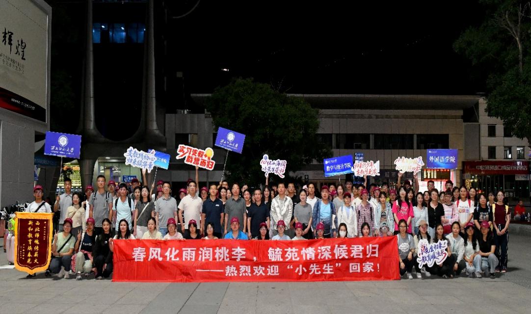 为保障2025春季学期教育实习学生安全返校,2025年6月28日晚上,学院院长杨和、副院长张国宝、副书记张向东、辅导员包佳佳老师和教务处实践科马政老师赴兰州火车站迎接完成实习任务的学子返校。活动以“小先生回家”为主题,通过举牌引导、行李搬运、暖心问候等细节服务,解决学生交通周转难题,传递“回家”的归属感。