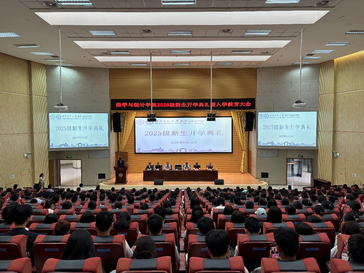 9 月14日,学院2025级新生开学典礼暨入学教育大会在毅然报告厅举行。学院党委书记孙小春、院长杨和,党委副书记张向东,副院长陈鹏玉、乔军胜、张国宝、逯光辉、教师代表杜小妮、信计与统计系主任杨宏、数学系主任杨超、辅导员王丽雯、周宇、包佳佳、新生班主任和2025 级全体新生参加此次会议,本次会议由张向东持。