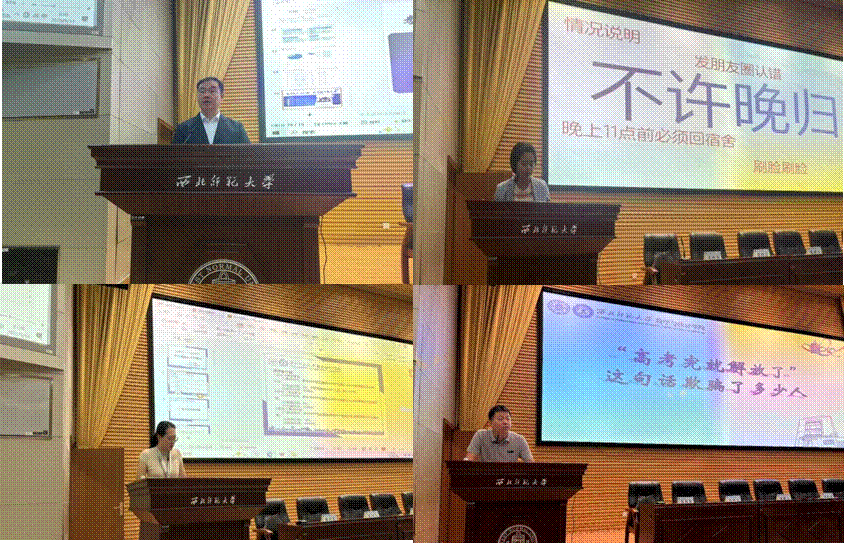 在开学典礼暨入学教育第二阶段,张向东做了《铸牢中华民族共同体意识,坚持我国宗教中国化方向》的报告,他结合大学生身边的实例,着重强调了“教育与宗教相分离”的原则;辅导员王丽雯详细介绍了学院的助学金政策、学院大学生日常管理规章制度以及本科新生军训事宜;辅导员周宇详细解读学校普通本科学生奖学金评定办法,防范电信网络诈骗,共同营造安全健康的校园环境;辅导员包佳佳围绕大学生人身安全、诚信考试、心理健康教育与职业生涯规划进行了讲解,为新生们提供了全面的指导和建议等。