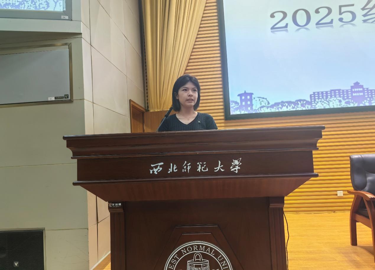 学院教师代表杜小妮老师向2025级新生分享了教学科研心得体会,并给新生提出三点建议和希望,一是要树立远大的理想和目标,二是要勤奋学习,勇于探索,三是要培养良好的品德和综合素质,希望同学们在求学路上努力学习,不负韶华,不负青春。