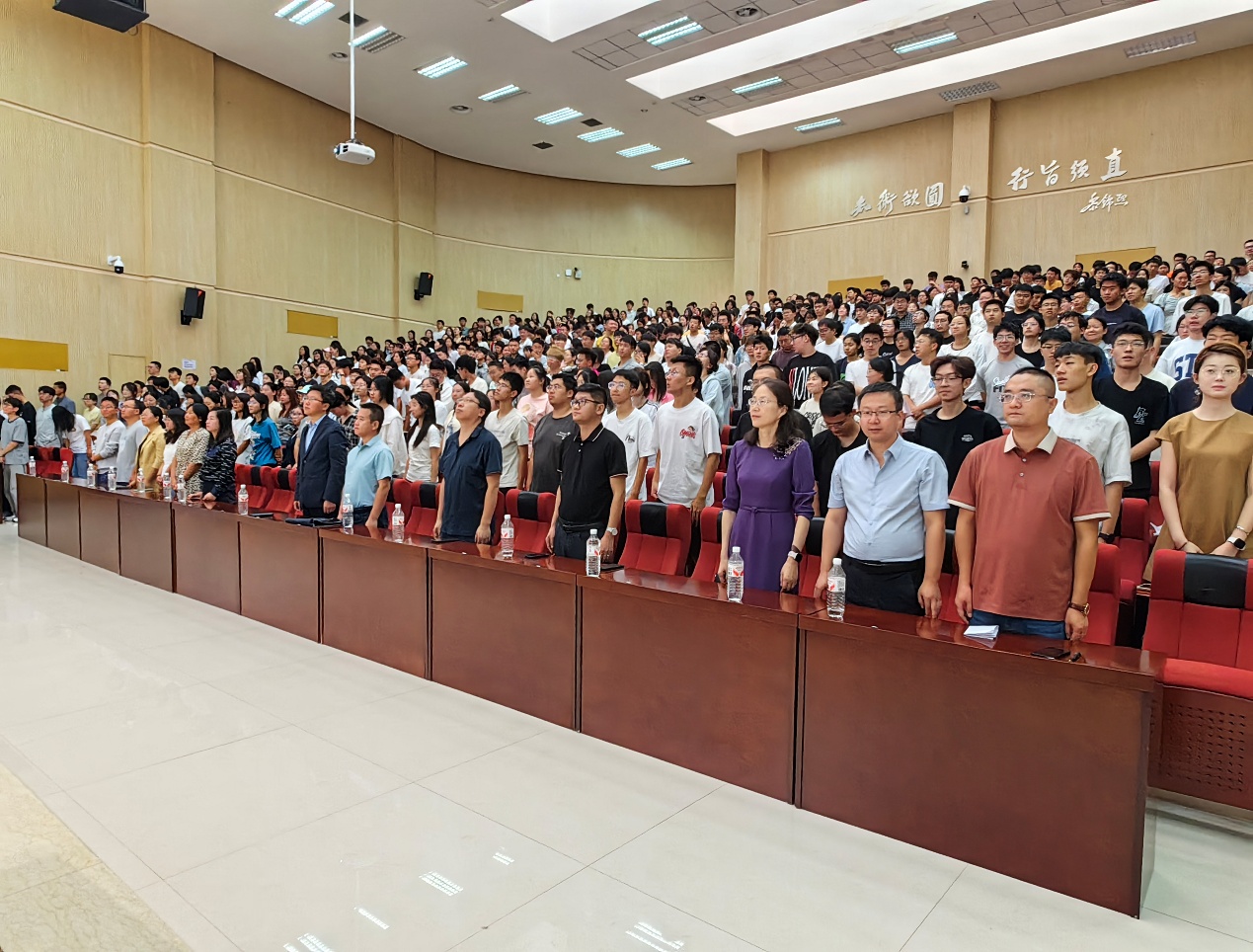 大会在庄严的氛围中拉开帷幕。全体师生高唱中华人民共和国国歌,激昂的旋律回荡在报告厅内,学院全体2025级新生深刻感受到作为新时代青年的责任与使命。