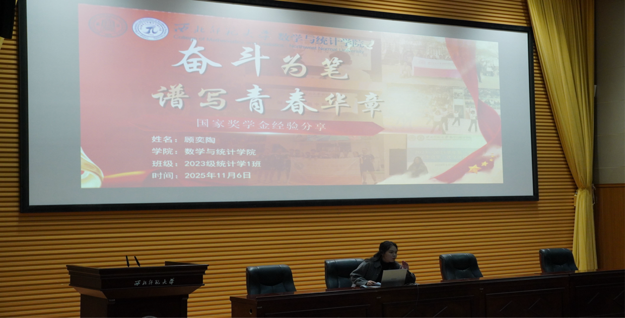 2023级统计学专业排名连续两年第一的顾奕陶同学,以知行合一的成长路径为例,展示其在保持学业成绩的同时,积极参与学科竞赛、学生工作、社会实践及志愿服务活动,用行动诠释了新时代青年的责任担当,她勉励同学们在专注专业学习的同时,主动拓展综合素质也是大学生的必修课。